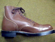 Boots have come a long way since 1941. The US Soldier of WW2 was initially given two type of boots: The Roughout Service Shoe and the Russet Service Shoe. They were ankle-cut boots with leather construction and rubber soles. The ankles and calves were protected by canvas leggings. Later in the war, the Army issued double-buckle boots, which eliminated the need (and hassle) of leggings.