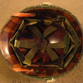 Early war liner suspension webbing was made of a white rayon. This was eventually changed to a herringbone twill of Olive Drab #3 color (that slightly greenish khaki). Late war and post war colors are a lot more green and darker. The webbing intersection at the crown should loop in to a loop of string. If the webbing shoots straight across, resembling an asterisk, this is a later war suspension pattern. Now, it's not too often that people are going to see the inside of your helmet, especially if you're wearing it. If you need a liner to get by until you find the right one, don't feel bad on purchasing one, so long as you know the difference between a proper WW2 liner suspension and a post-war liner suspension. Again, it's a quick fix until the right helmet and liner comes a long.