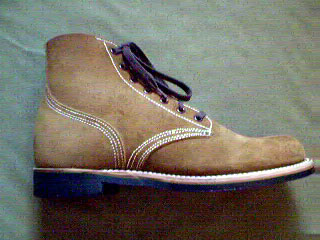 The roughout boots are an ankle high, leather boot with rubber soles. It has a soft, un-capped toe and the leather is rough side out, which eliminated the need for polishing in the field. They are worn for field work and nothing else.