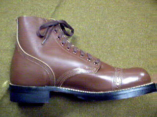 The Russet Service Shoe was the polishable version of the Roughout Shoe, designed for garrison duty and to be worn with the Class A dress uniform. However, it was also worn in the field and in combat. It features a russet brown polishable leather with a toe cap.