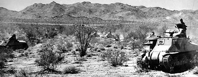 2nd Armored M3 tanks training in the Mojave Desert. |